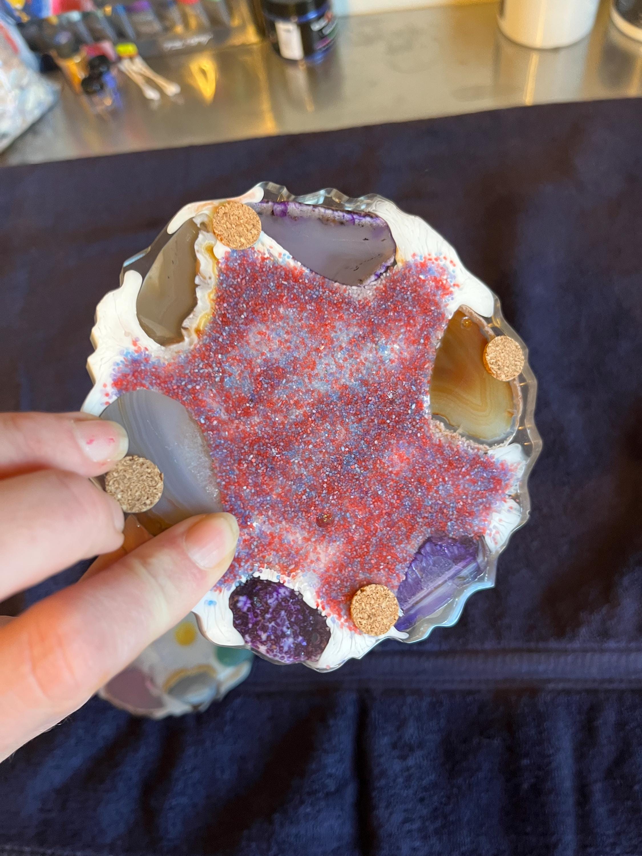4 Coaster set with geode rocks and daisy's decal