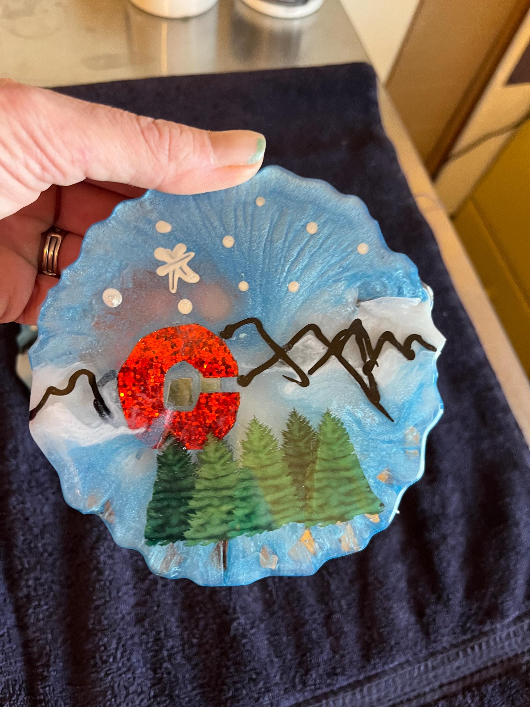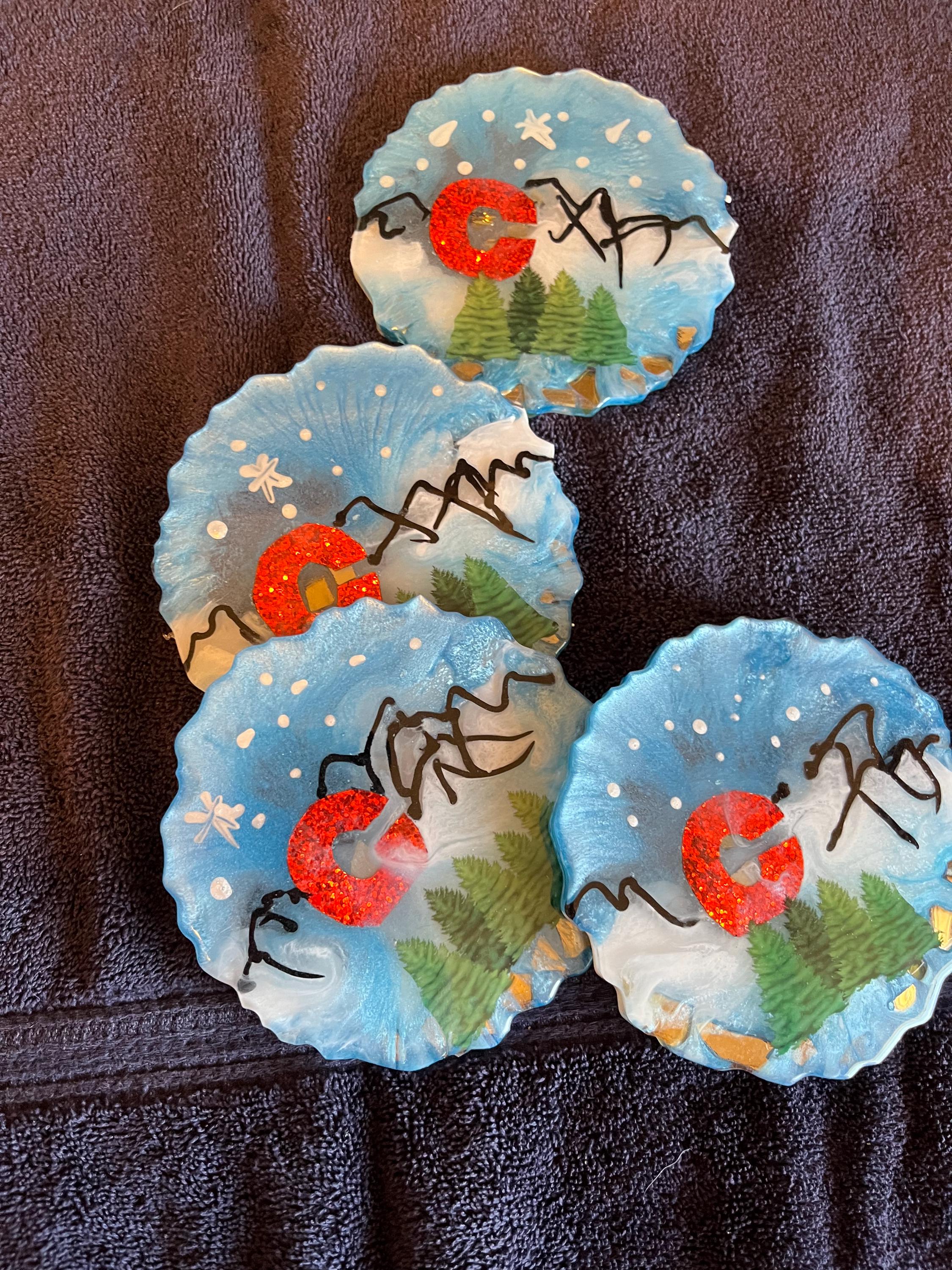 Set of 4 Colorado coasters made with resin. 5 in in diameter really fun set if you love Colorado
